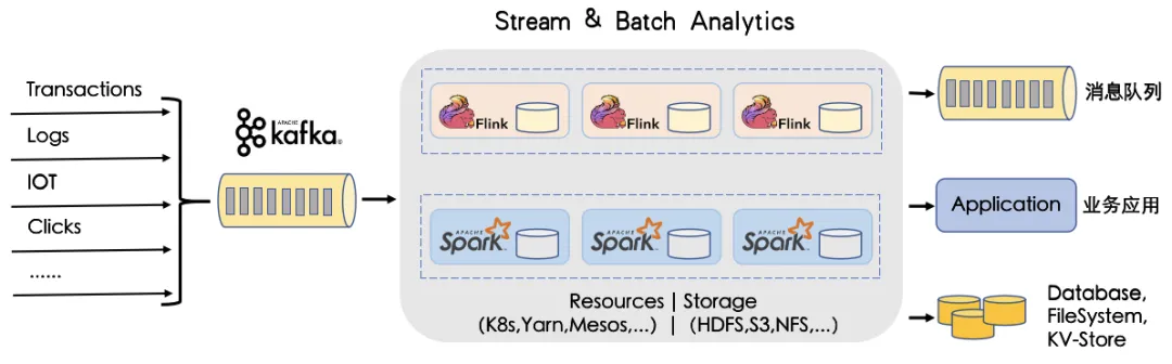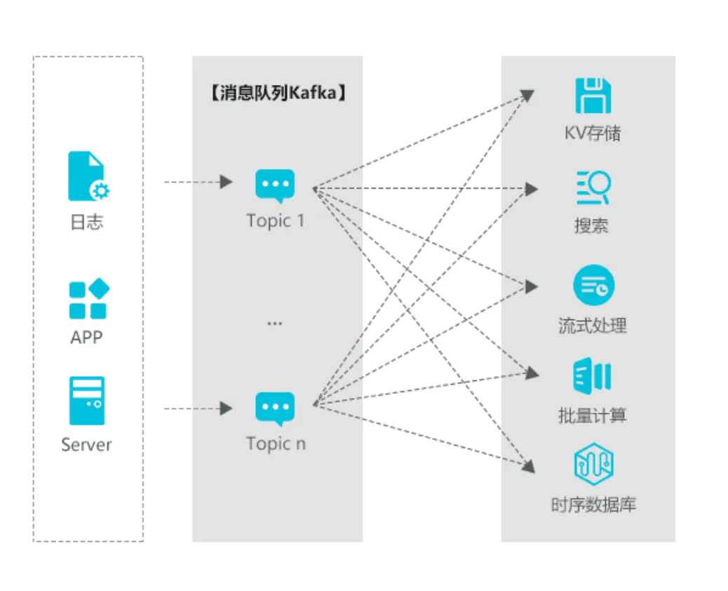 这里总结内容主要针对Kafka2.1.1版本,包括集群版本升级、数据迁移、流量限制、监控告警、负载均衡、集群扩/缩容、资源隔离、集群容灾、集群安全、性能优化、平台化、开源版本缺陷、社区动态等方面。本文主要是介绍核心脉络,不做过多细节讲解。下面我们先来看看Kafka作为数据中枢的一些核心应用场景。下图展示了一些主流的数据处理流程,Kafka起到一个数据中枢的作用。
