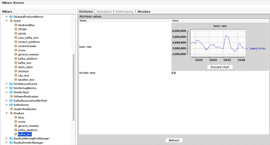 (1)副本同步出流量指标:ObjectName:kafka.server:type=BrokerTopicMetrics,name=ReplicationBytesOutPerSec(2)副本同步入流量指标:ObjectName:kafka.server:type=BrokerTopicMetrics,name=ReplicationBytesInPerSec