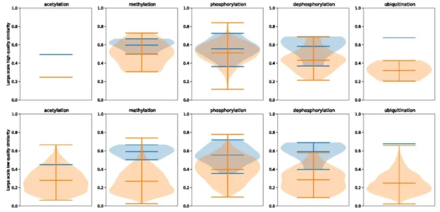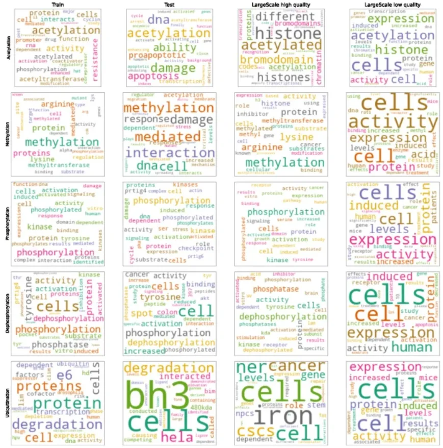 STRING v11 是最受欢迎的 PPI 数据库之一,它使用文本挖掘作为策展方法。自 STRING v9.1 以来,他们的文本挖掘管道基本保持不变。STRING v9.1 使用基于加权 PPI 共现规则的方法,其中权重取决于蛋白质对是否一起出现在同一文档、同一段落或同一句子中。即使训练数据有限,基于规则的方法也可能非常有效,具体取决于任务。将 STRING v11 数据库中的交互单元定义为「功能关联,即两种蛋白质之间的联系,它们共同促成特定的生物学功能」。这个定义允许基于共现规则的方法非常有效,即如果一个蛋白质对经常在文本中同时出现,那么这对很可能是相关的。测试和大规模摘要与训练集的 PTM 余弦相似性。iPTMnet 从各种手动管理的数据库(例如 HPRD 和 PhosphoSitePlus 以及文本挖掘资源)中整合有关 PPI 和 PTM 的信息。对于文本挖掘,iPTMnet 使用 RLIMS-P 和 eFIP 来自动管理酶-底物-位点关系。这些工具使用基于规则的方法,使用文本模式来提取 PTM 中涉及的蛋白质。2019 年 11 月的 iPTMnet 统计数据表明,使用 RLIMS-P 策划的酶-底物对总数少于 1,000 对。这个适度的数字突出了使用文本模式的主要挑战:虽然它们可以以相当高的精度提取关系,但它们对于如何在文本中描述 PPI 关系的变化并不稳健。因此,研究人员探索了基于机器学习的方法,这些方法能够提取更多的关系。使用深度学习自动提取 PPI 可能是有益的,因为它有可能从各种文本中提取 PPI,其中 PPI 关系的描述方式无法通过手动制作的基于规则的系统轻松捕获。训练、测试、大规模预测中的 PTM 常用词。然而,深度学习需要大量的训练数据。确保预测质量的模型的通用性是其广泛采用从文本中自动提取 PPI 关系的关键。大规模提高预测质量需要专注于减少误报,以最大限度地减少对现有知识库条目的破坏,因此,减少低质量预测的置信度校准方法成为大规模文本挖掘的关键步骤。置信度校准是预测代表真实正确性的概率估计的问题,在这里,研究人员使用置信度校准来了解预测何时可能正确,并将其用作改进泛化的机制。通用性的方面在很大程度上仅限于对测试集的评估,而使用测试集性能作为现实世界性能的代理的局限性在以前的研究中受到了挑战。创建具有细粒度注释的黄金标准训练数据,是一项手动的劳动密集型任务,并且是将机器学习应用于新领域或任务的限制因素。能够利用一个或多个现有数据源是在新领域或新任务中使用机器学习的关键。远程监督利用现有的知识库,例如 IntAct,而不是注释新数据集。然而,使用远程监督数据集有两个主要限制:(a)噪声标签需要降噪技术来提高标签质量(b)它们需要生成负样本,因为数据库通常只包含关系的正样本。BiLSTM 和 BioBERT 等深度学习架构以前已用于使用自然语言处理(NLP)和 AIMed 数据集对蛋白质关系提取方法进行基准测试。然而,这些工作并没有衡量这些模型校准置信度分数的能力。研究人员选择了最先进的深度学习方法 BioBERT,训练一个集成来增强置信度校准,并使用置信度变化来抵消置信度校准期间类不平衡的影响。论文链接:https://bmcbioinformatics.biomedcentral.com/articles/10.1186/s12859-021-04504-x