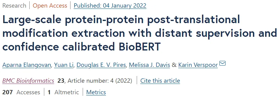 蛋白质-蛋白质相互作用(PPI)对正常的细胞功能至关重要,并且与许多疾病途径有关。一系列蛋白质功能由蛋白质相互作用通过翻译后修饰(PTM)介导和调节。然而,在 IntAct 等生物知识数据库中,只有 4% 的 PPI 使用 PTM 进行注释,主要通过人工管理进行,既不省时也不划算。研究人员的目标是通过使用深度学习的远程监督训练数据来帮助人类管理,从文献中提取 PPI 及其成对 PTM 来促进注释。墨尔本大学的研究人员使用 IntAct PPI 数据库创建一个远程监督数据集,该数据集标注了相互作用的蛋白质对、它们相应的 PTM 类型以及来自 PubMed 数据库的相关摘要。他们训练了一组 BioBERT 模型(称为 PPI-BioBERT-x10)以提高置信度校准;扩展了具有置信度变化的整体平均置信度方法的使用,以抵消类不平衡的影响,以提取高置信度预测。在测试集上评估的 PPI-BioBERT-x10 模型产生了适中的 F1-micro 41.3(P = 58.1,R = 32.1)。然而,通过结合高置信度和低变化来识别高质量的预测,调整预测的精度,研究人员以 100% 的精度保留了 19% 的测试预测。他们在 1800 万份 PubMed 摘要上评估了 PPI-BioBERT-x10,提取了 160 万个PTM-PPI 预测,并过滤了大约 5700 个高置信度预测。在 5700 个中,对一个小的随机抽样子集的人工评估表明,尽管进行了置信度校准,但精度仍下降到 33.7%,并且即使进行了置信度校准,也凸显了超出测试集的通用性挑战。研究人员通过只包括与多篇论文相关的预测来规避这个问题,将精度提高到 58.8%。在这项工作中,他们强调了基于深度学习的文本挖掘在实践中的好处和挑战,以及需要更加强调置信度校准以促进人工管理工作。该研究以「Large-scale protein-protein post-translational modification extraction with distant supervision and confidence calibrated BioBERT」为题,于 2022 年 1 月 4 日发布在《BMC Bioinformatics》。关键的生物过程,例如信号级联和新陈代谢,受到蛋白质-蛋白质相互作用(PPI)的调节,这些相互作用通过修饰其他蛋白质以通过翻译后修饰(PTM)调节它们的稳定性或活性。PPI 在大型在线存储库(例如 IntAct 和 HPRD)中进行管理。然而,大多数 PPI 没有用函数注释,例如,IntAct 数据库有超过 100,000 个人类 PPI,但其中不到 4000 个用 PTM 注释,如磷酸化、乙酰化或甲基化。了解相互作用的蛋白质对之间 PTM 的性质对于研究人员确定网络扰动和下游生物学后果的影响至关重要。生物数据库中的 PPI 和 PTM 通常是手动管理的,这需要训练有素的管理人员,同时也很耗时。科学家还强调了维护手动管理数据库、确保它们是最新的以及手动管理的经济方面的其他挑战。因此,采用自动策展方法对于这项工作的可持续性至关重要。研究人员通过文本挖掘 PubMed 摘要来提取 PTM,提取蛋白质对及其相应的 PTM。给定输入期刊摘要,输出是 <Protein1, PTM function, Protein2> 形式的三元组,其中 Protein1 和 Protein2 是蛋白质的 Uniprot 标识符。由于他们的训练数据源不包含蛋白质之间关系的方向,所以不考虑 Protein1 和 Protein2 之间的关系方向,即 <Protein1, PTM function, Protein2> 等价于 <Protein2, PTM function, Protein1>。研究人员还旨在帮助 PTM-PPI 的人工管理,因此他们通过将机器学习模型应用于 1800 万个 PubMed 摘要以提取 PTM-PPI 三元组来评估机器学习模型的泛化程度。在这里,研究人员使用置信度校准作为一种机制来理解通用性,以了解预测何时可以提取高质量的预测。该团队相信他们是第一个研究使用具有深度学习和远程监督的 NLP 进行大规模 PTM-PPI 提取的实际适用性和挑战的团队。研究人员专注于提取 PTM,包括磷酸化、去磷酸化、甲基化、泛素化、去泛素化和乙酰化(这些 PTM 是根据训练数据的可用性选择的)。他们使用远程监督方法创建一个训练数据集,使用 IntAct 作为源知识库从 PubMed 摘要中提取 PTM-PPI 三元组。他们训练了一组 BioBERT 模型来改进神经置信度校准。然后,将经过训练的模型应用于 1800 万份 PubMed 摘要,以提取 PPI 对及其相应的 PTM 函数;并尝试使用神经置信度校准技术来确保高质量的预测,以增强和促进人类管理工作。通过深度学习提取蛋白质相互作用的相关工作用于评估文本挖掘方法的 PPI 提取数据集(例如 AIMed 和 BioInfer)在十多年来(自 2007 年以来)一直保持不变,并且专注于提取蛋白质相互作用,而不是它们之间 PTM 相互作用的性质。这些数据集还被用于评估最新的机器学习方法,包括蛋白质对提取中的深度学习。然而,在使用 AIMed 和 BioInfer 数据集的基准测试方法的有限背景下,最新的深度学习趋势似乎在 PPI 管理中并不广泛流行。使用文本挖掘和基于规则的方法的自动 PPI 管理尝试似乎更普遍。