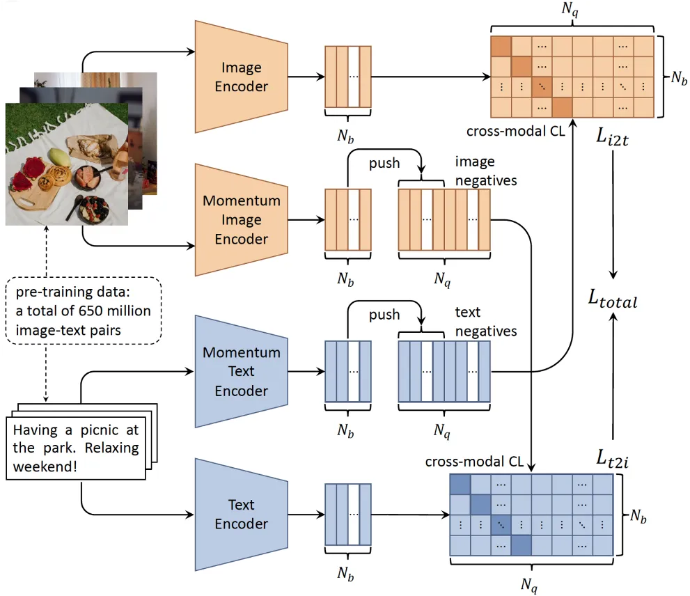 具体来说,为了对图文对的弱相关性进行建模,并学习一个统一的语义空间,该研究基于单模态对比学习方法 MoCo 设计了一个跨模态对比学习算法。如图 2 所示,该研究的 BriVL 模型使用了 momentum 机制,用来在不同的训练批次中动态维护负样本队列。通过这种方式,该研究会有一个比较大的负样本数量(对对比学习至关重要),同时使用一个相对较小的 batch 大小以减少 GPU 的内存占用(即 GPU 资源节约)。