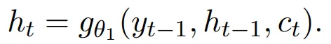 其中c(t)是encoder的输出,h(t)是RNN隐藏层,由下式计算: