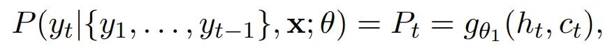 解码器的部分是一个RNNLM,这里的RNN Hidden Layer使用的是LSTM单元。解码器的输出由下式计算: