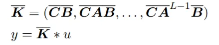 这个方程可以解释为一个线性 RNN,其中 x_k 是一个隐藏状态。y 也可以用卷积计算: