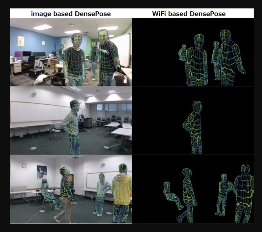 下图左为基于图像的 DensePose,图右为基于 WiFi 的 DensePose。