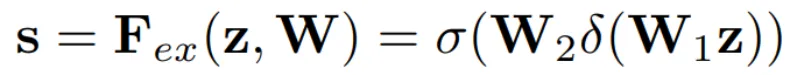 具体的,在squeeze步骤中使用全局平均集合来生成 channel-wise 的统计数据z∈RC。而为了充分捕捉channel-wise 的依赖性,下面的激励步骤通过两个全连接层来学习注意力机制: