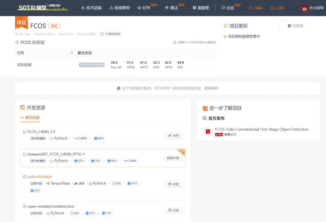 当前 SOTA!平台收录 FOCS 共 5 个模型实现资源。