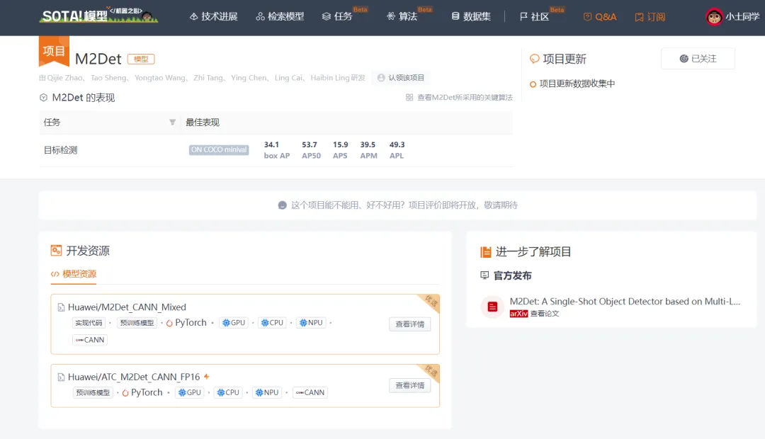 项目 | SOTA!平台项目详情页 |