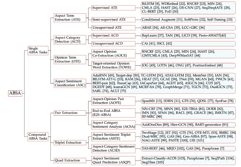 图 3: 具体 citation 可见综述文章 A Survey on Aspect-Based Sentiment Analysis: Tasks, Methods, and Challenges