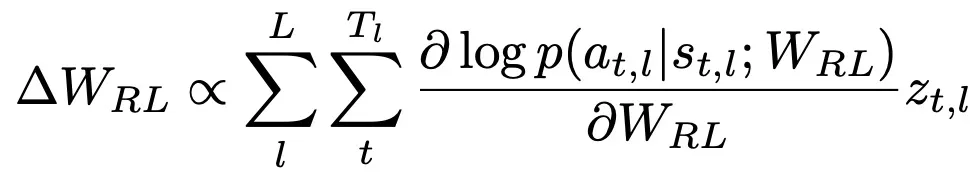 (2)训练强化学习部分。这部分就是使用SGD最大化: