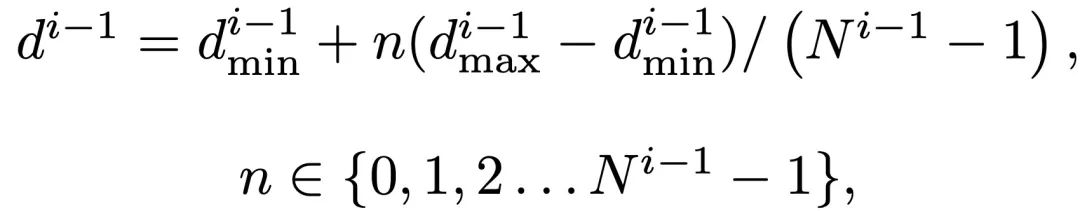 根据均匀采样,得到下一阶段离散的平面假设深度: