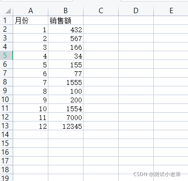 首先,我们先看下我们需要形成可视化的数据,这里我添加的是每月销售额的数据。会一步步实现可视化数据。