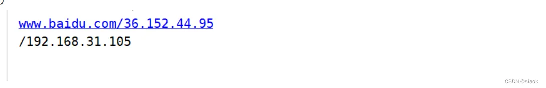/根据给定的host获取主机名和IP地址 InetAddress byName = Inet4Address.getByName("www.baidu.com"); System.out.println(byName); //根据给的byte数组【IP地址】获取主机名和IP地址 byte[] addres={(byte) 192,(byte) 168,31,105}; InetAddress byAddress = Inet4Address.getByAddress(addres); System.out.println(byAddress);