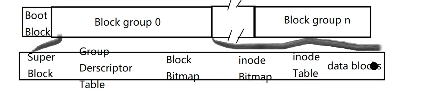 - 一个目录也是一个文件,也一定在一个分区里面,结合inode,在该分区中找到分组,在该分组中inode table中找到文件的inode