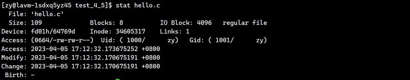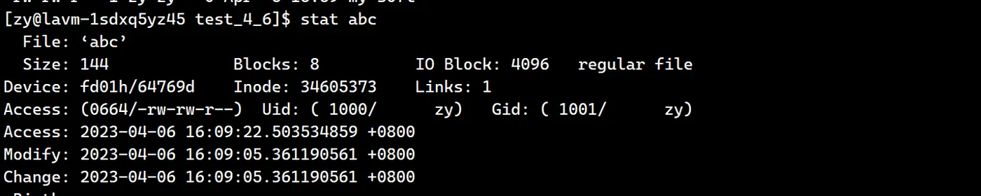 这个信息除了通过这种方式来读取,还有一个stat命令能够看到更多信息