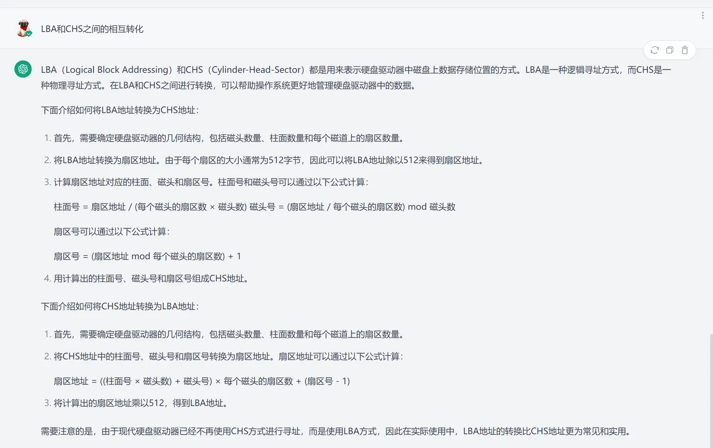 OS->N->LBA->逻辑地址块,可是磁盘只认CHS所以我们要知道