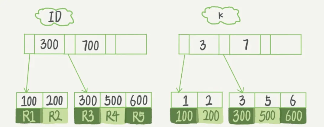 ,即主键查询方式,则只需要搜索ID这棵B+树; - 如果语句是