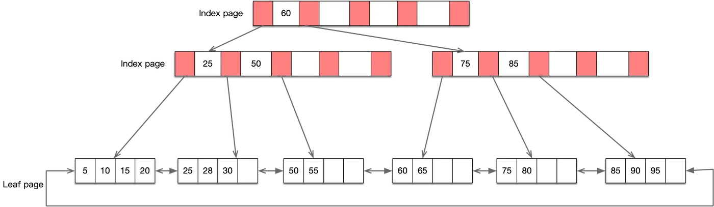 - B+ 树的高度一般都在 2 ~ 4 层,这就是说查询某一键值的行记录时,最多只需要 2到4次 IO,一般机械硬盘每秒至少可以做 100次IO,2 ~ 4次的 IO 意味着查询时间只需 0.02S ~0.04S。