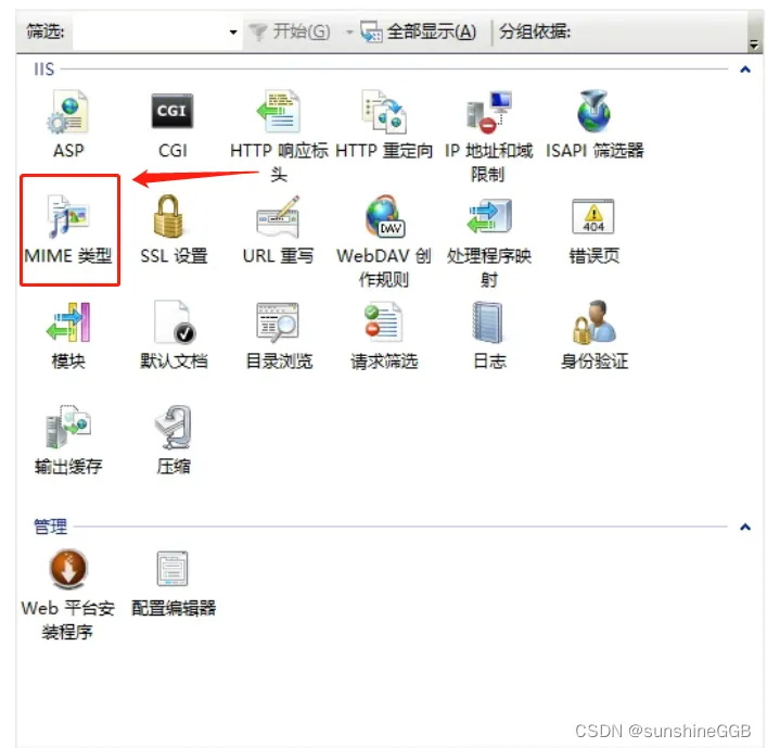 1)单击IIS上右击所建网站,选择MIME类型