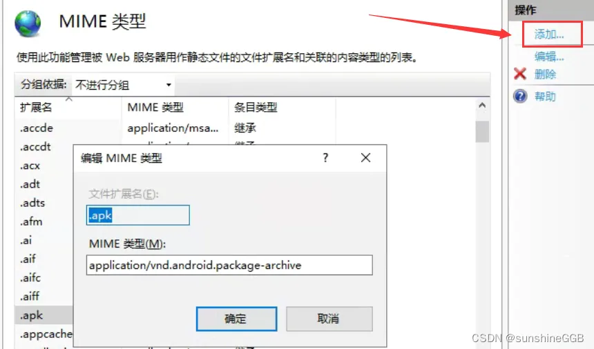 2、IIS-添加.apk的MIME类型
