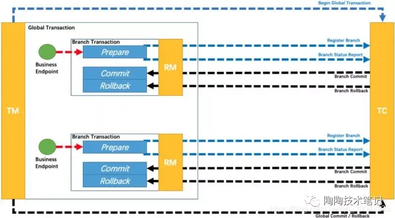一个典型的分布式事务过程: