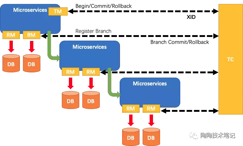 - XID 在微服务调用链路的上下文中传播。