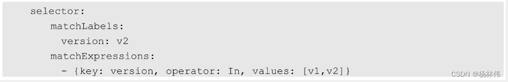 ReplicaSet进一步增强了RC标签选择器的灵活性(之前RC的标签选择器只能选择一个标签而ReplicaSet拥有集合式的标签选择器,可以选择多个Pod标签),如下所示: