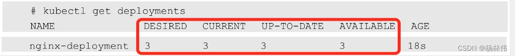 Deployment已创建好所有3个副本,并且所有副本都是最新的可用的。