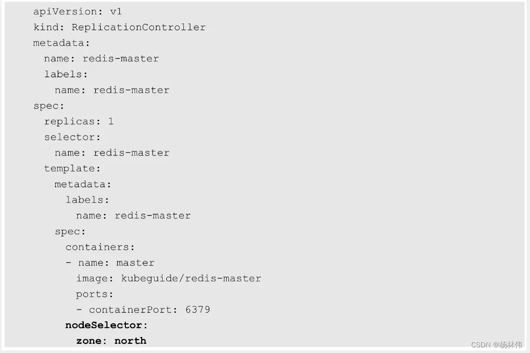 然后,在Pod的定义中加上nodeSelector的设置,以redis-master- controller.yaml为例: