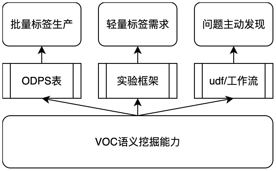 同时,对于淘宝的VOC标签,各业务部门多年来已积攒下多批标签,但多为各独立业务解决自身问题而设计,在设计上存在严重的异构问题,可复用性较低,很少开放给公域,同时各行业下的行业化标签基本处于供给盲区。