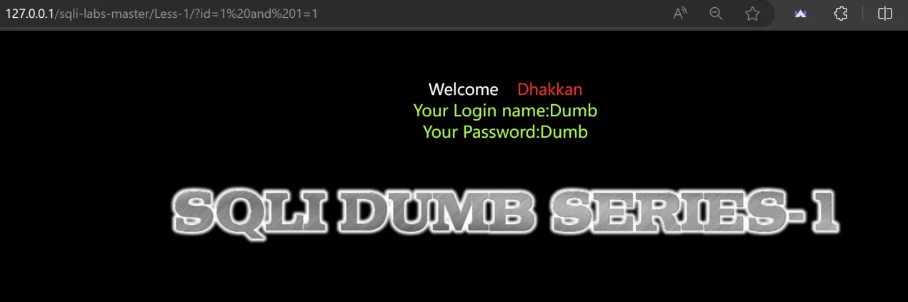 首先进行初步的试探,构造?id=1 and 1=1,页面正常