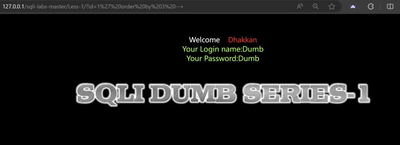 构造?id=1' order by 3 --+,正常回显,说明当前表只有3列