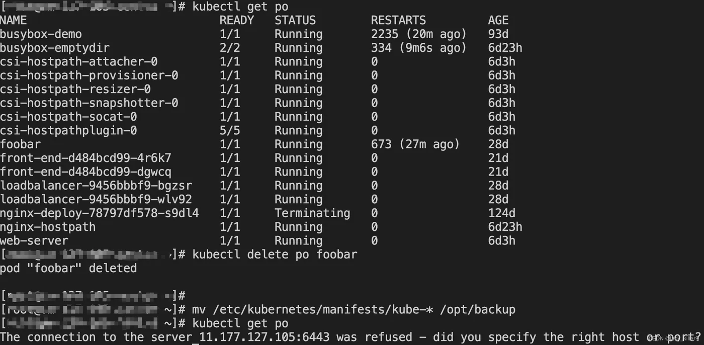 mv /etc/kubernetes/manifests/kube-* /opt/backup