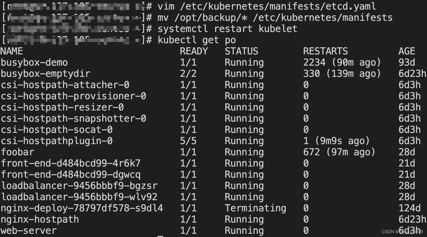 mv /opt/backup/* /etc/kubernetes/manifests systemctl restart kubelet