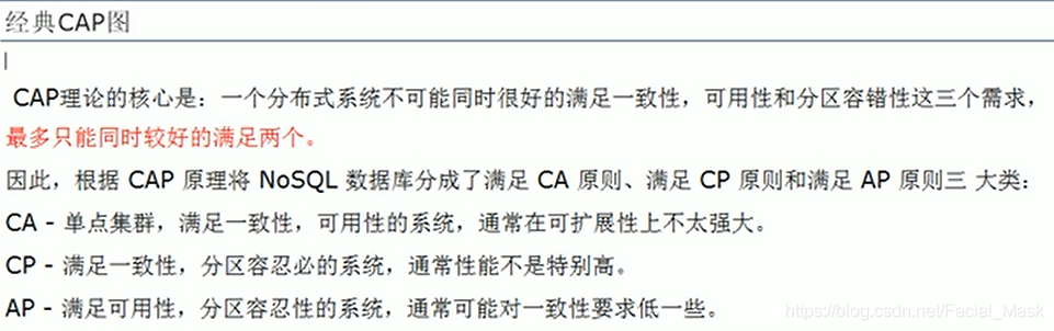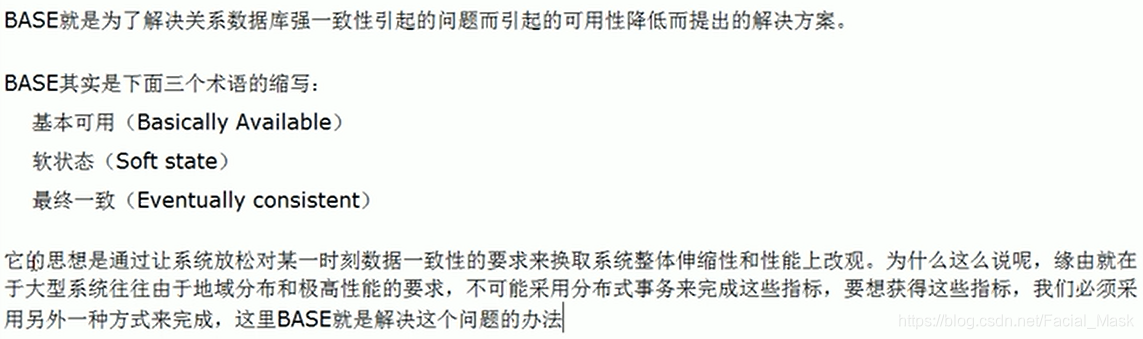 **是传统的ACID,指的就是事务的四大特性,如果在在非关系性数据库当中如何满足这些东西呢?对应的就是我们的Nosql当中的CAP特性,强一致性,可用性,分区容错性。
