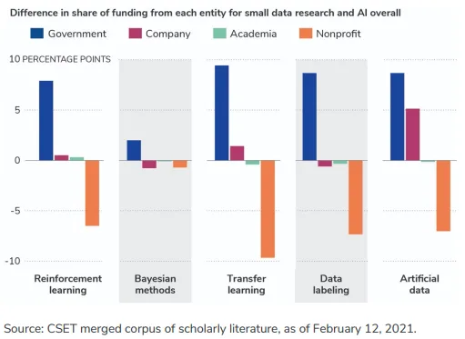 Figure 7. Funding sources for small data approaches relative to AI overall
