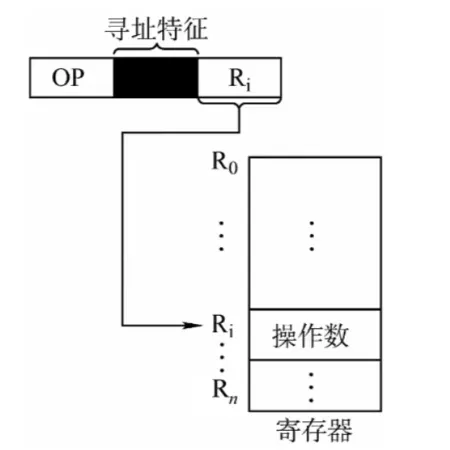 寄存器寻址:在指令字中直接给出操作数所在的寄存器编号,即 $EA=R_i$,其操作数在由指所指的寄存器内