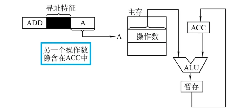 2、需要两个操作数,但其中一个操作数隐含在某个寄存器(如隐含在ACC)