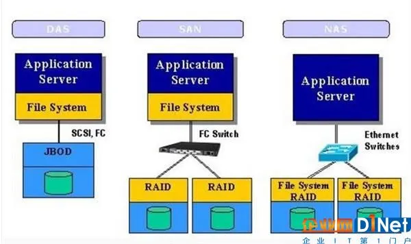 而另一个DAS(Direct-Attached Storage),即开放系统的直连式存储。三个存储名词很相近,却表达了不同的存储状态。下面笔者将以三者最大的不同点入手,帮助大家区分三者的区别。