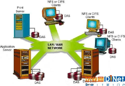 DAS就是这样的一个姑娘,你与她几乎每天都会相见,但却从来不知道她的名字。因为它是个人电脑中的存储,因为它是服务器中的一部分,将外置存储通设备通过SCSI或FC接口直接连接到应用服务器上。