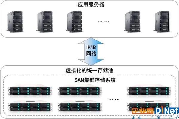 从理论上来讲,SAN支持数以百计的磁盘,提供了海量的存储空间,解决了大容量存储问题;从逻辑层面,这个海量空间可以按需要分成不同大小的LUN,再分配给服务器,也解决了只需要小容量存储的问题。