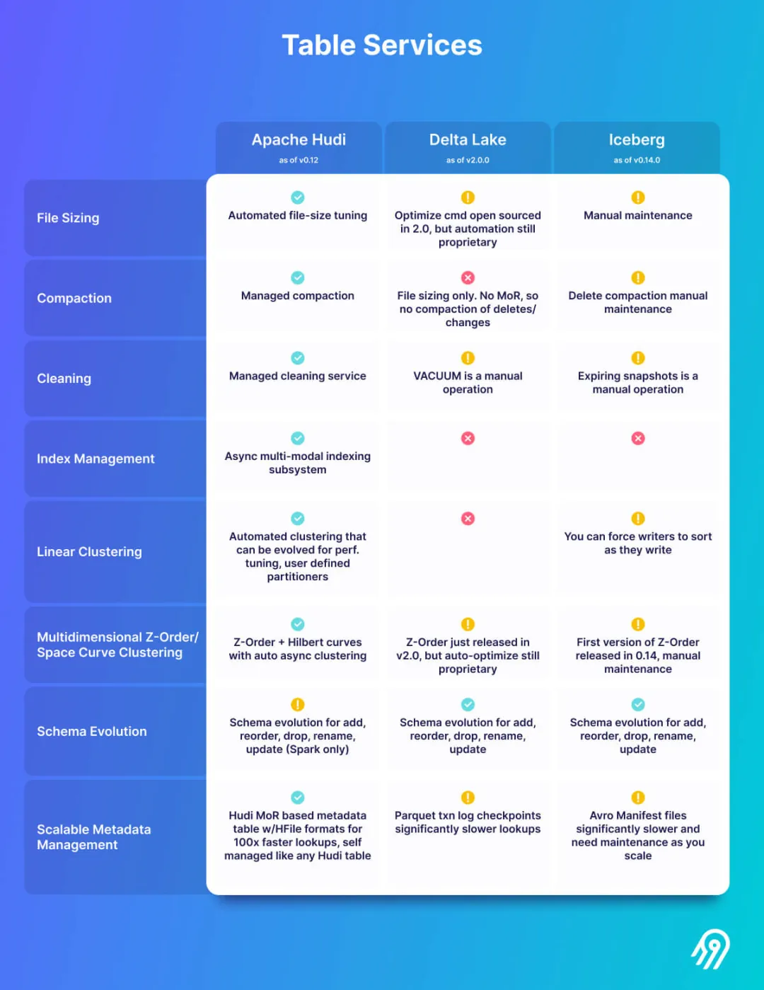 数据湖表格式比较:Delta Lake vs Apache Hudi vs Apache Iceberg