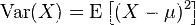 设X为服从分布F的随机变量, 如果E[X]是随机变量X的期望值(平均数μ=E[X])