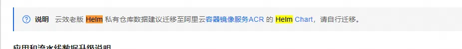这个我们不支持迁移,您可以看下文档中的这里 ,云效新版目前没有helm制品仓库。