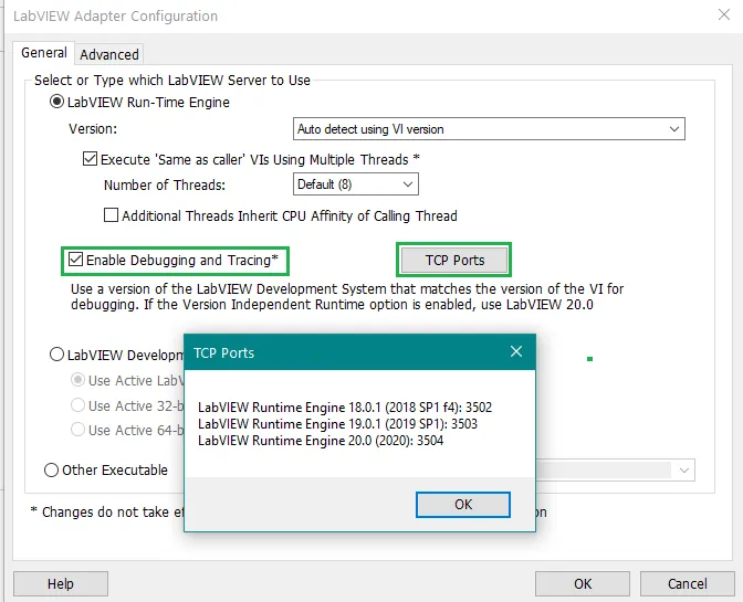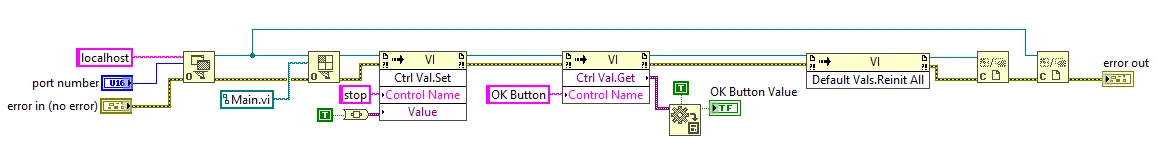1. LabVIEW VI服务器端口需要使用属性节点的Server:Port property under VIServer >> Application class of the property node。为其分配一个未占用的端口号。