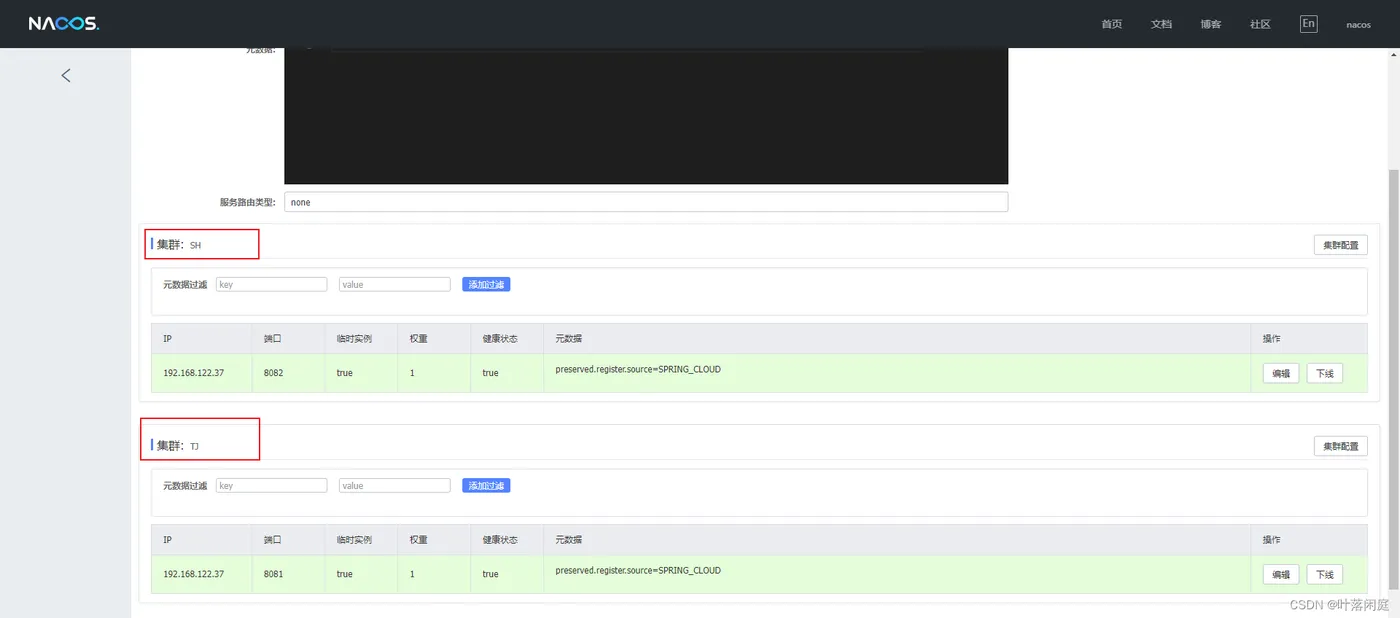 - 刷新Nacos控制台,在服务详情中可以看到集群名称发生变化: