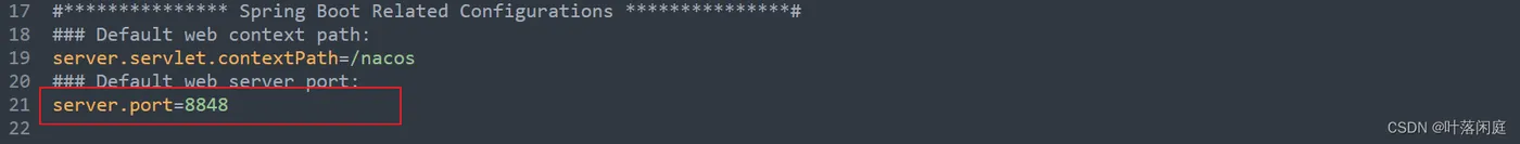 在nacos的配置文件中,有一个端口号的设置,若端口8848已被占用,可更改其他端口号